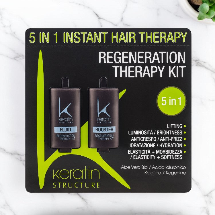 Tratament regenerant în doză unică pentru toate tipurile de păr cu Keratină, Aloe Vera și Acid hialuronic. Folosirea lui asigură un efect de lifting, luminozitate, ondulare, hidratare și flexibilitate. Acidul hialuronic este un puternic activator al creșterii părului și contribuie la refacerea lui după o sesiune de vopsire. Mulțumită keratinei, părul devine mai rezistent și sănătos.